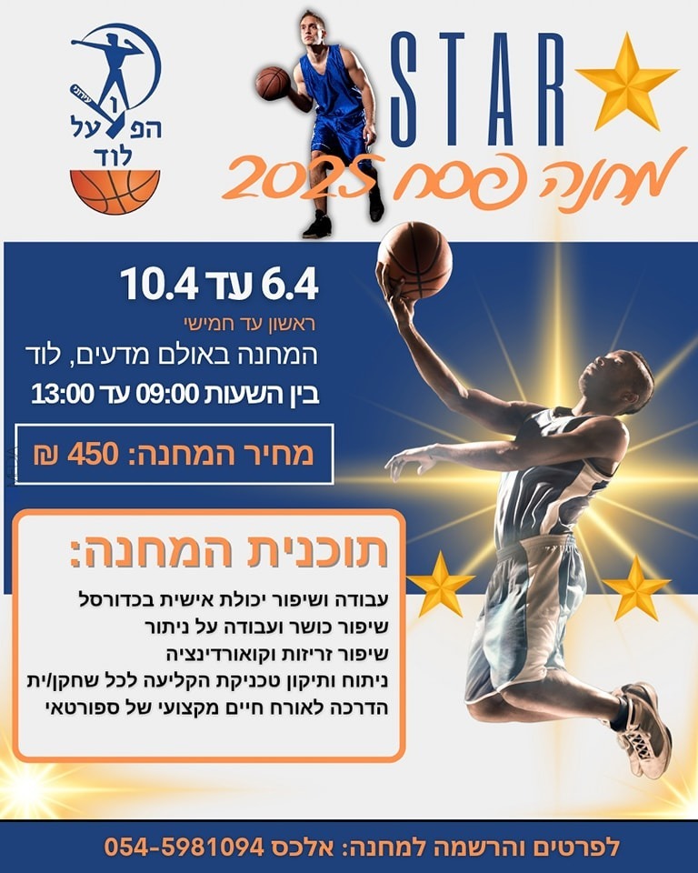 ההרשמה למחנה STAR של הפועל עירוני לוד לשנת 2025 עומדת להסתיים!