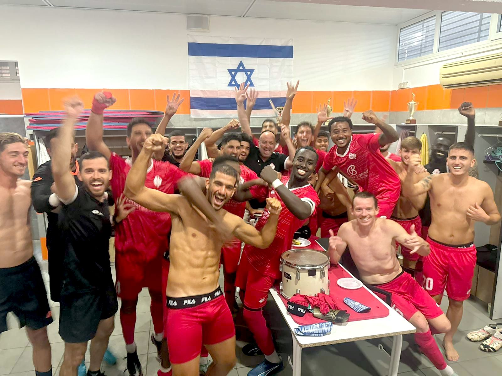 הפועל בני רגב לוד באחד מהרגעים השמחים שהיו העונה. צילום מרדכי לריא.jpe