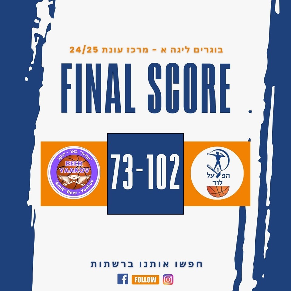 הפועל עירוני לוד רשמה ניצחון אדיר במשחק חוץ מול הפועל באר יעקב, כשהבוגרים הפגינו יכולת מרשימה והשיגו תוצאה סוחפת של 102-73.