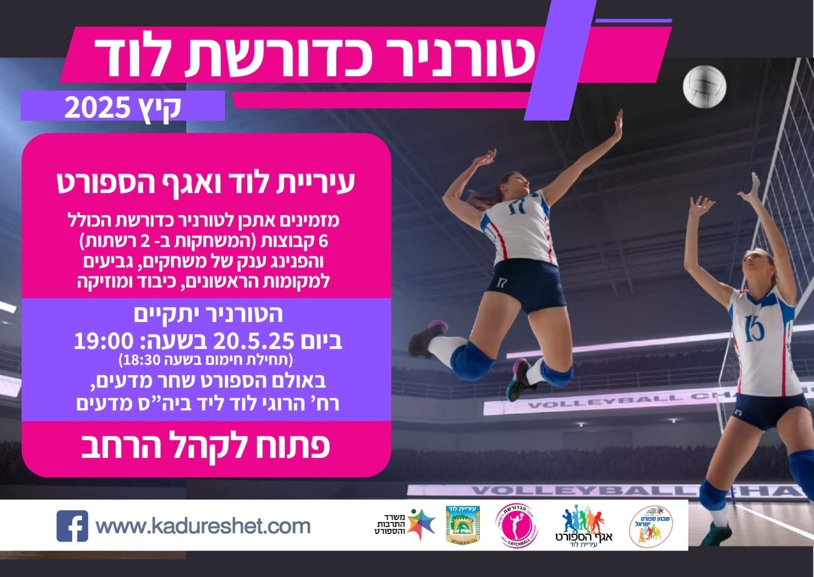 ביום שני, 20.5.25, תקיים העיר לוד טורניר כדורשת אזורי בהשתתפות קבוצות מובילות: קבוצת תעשייה אווירית, "הלביאות" מחולון, "הנביאות" ממודיעין, וקבוצת עיריית לוד. הערב יכלול משחקים תחרותיים, כיבוד, מוסיקה, גביעים ואווירה קהילתית תוססת – והכול ביוזמה והפקה של אגף הספורט בלוד. האירוע מבקש לחגוג את הספורט הנשי ולחבר בין נשים על מגרש אחד – דרך תחרות, שותפות ורוח טובה.