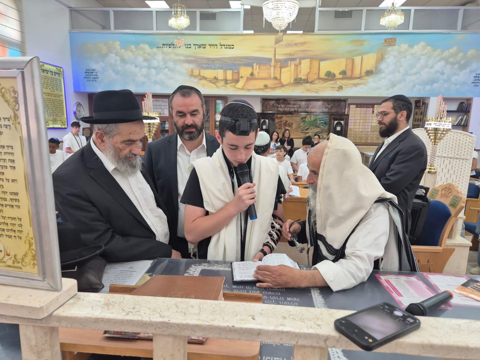 חתני בר המצווה הנרגשים בבית הכנסת מושיע ישראל