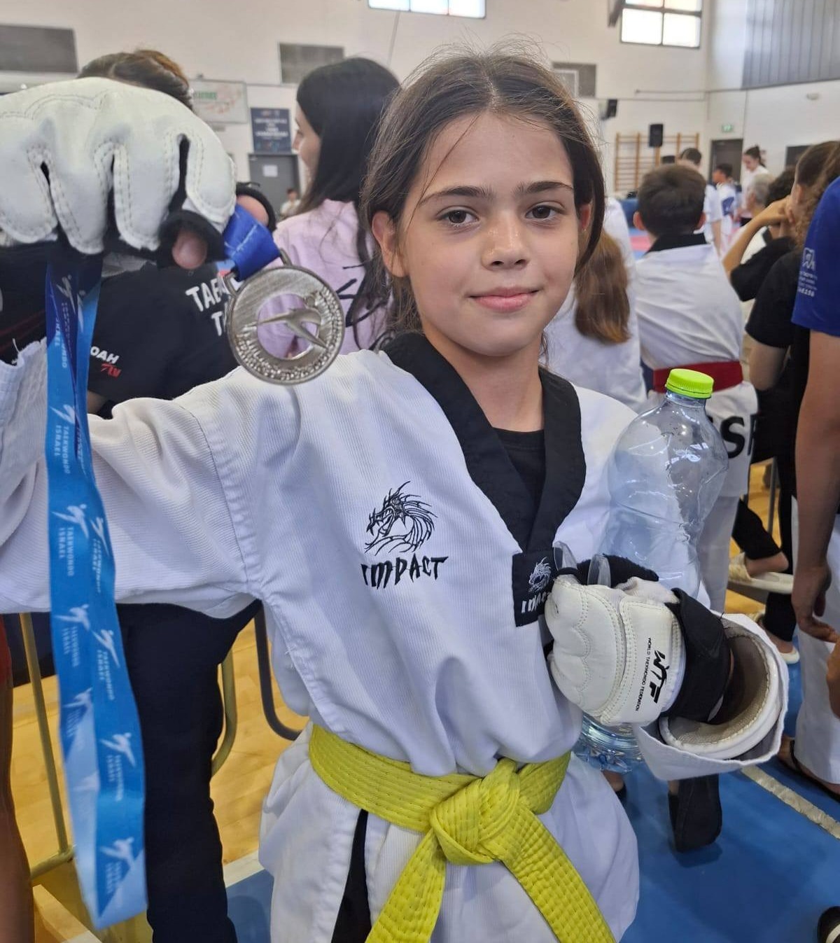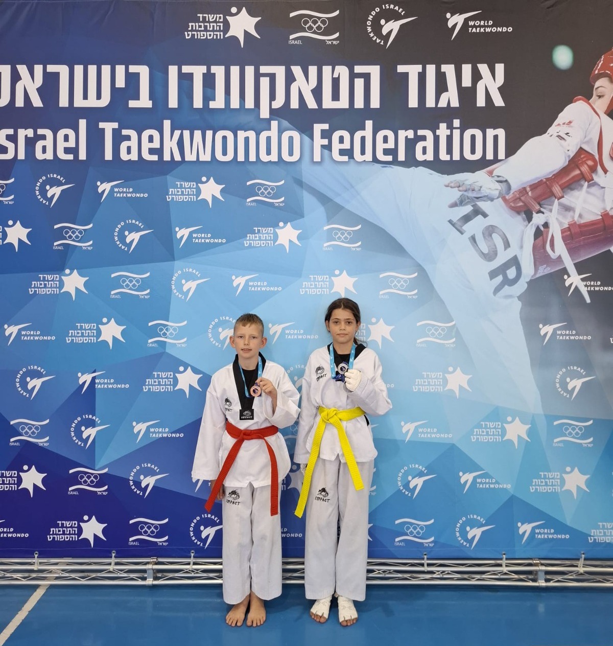 הספורטאים הצעירים מציגים את המדליות בהן זכו באליפות גביע איגוד הטאקוונדו 2