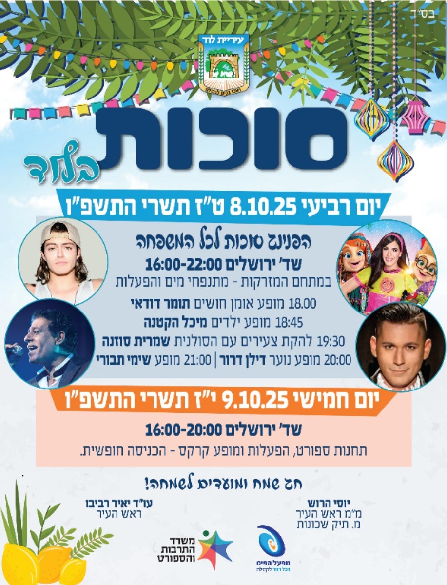 תושבות ותושבי לוד היקרים, החג הכי שמח בשנה מגיע – ואנחנו בעיריית לוד דאגנו שתוכלו לחגוג אותו כמו שצריך!