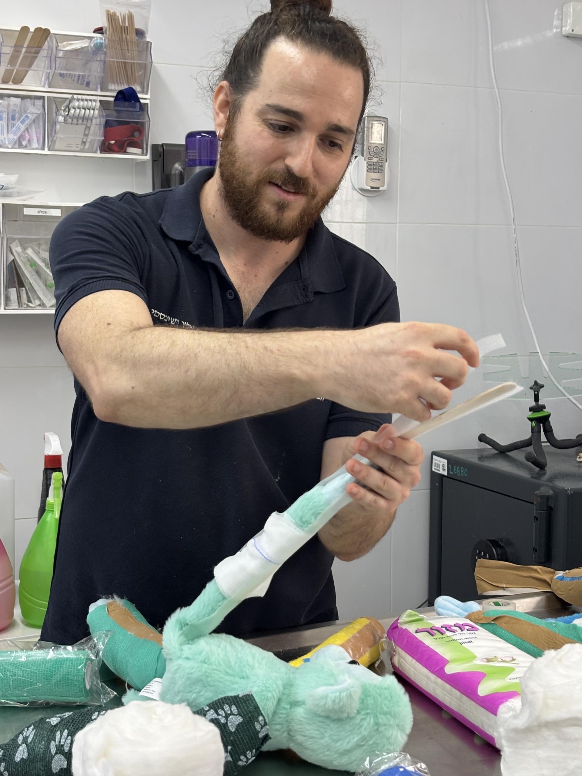 דר אלון וישינסקי מציג לאורחים ניתוח על בובה בחדר הניתוח של המחלקה.jpe