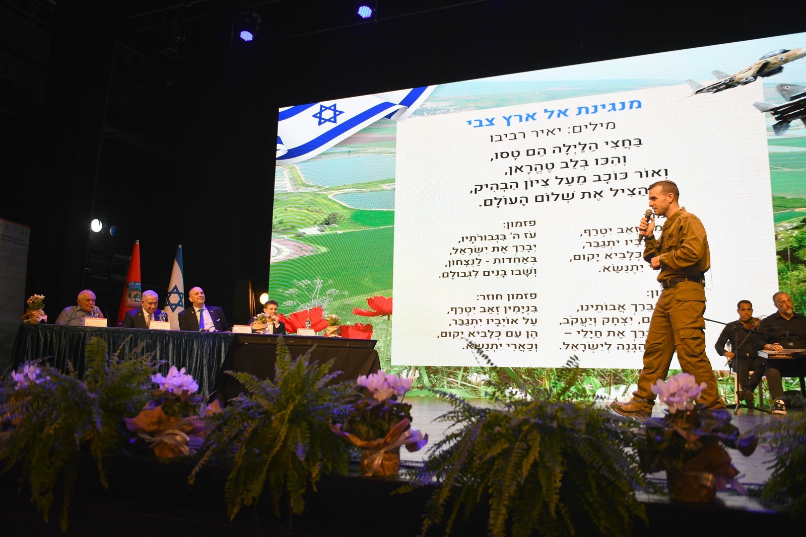 קהל עצום מילא עד אפס מקום את היכל התרבות והריגע בדגלי ישראל.JPG
