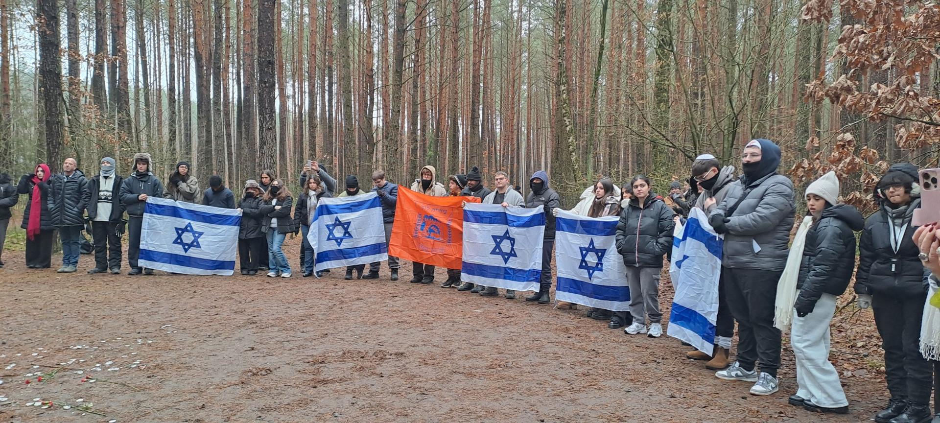הדגל של לוד הונף בגאווה במסע תיכון דרכא למחנות ההשמדה בפולין