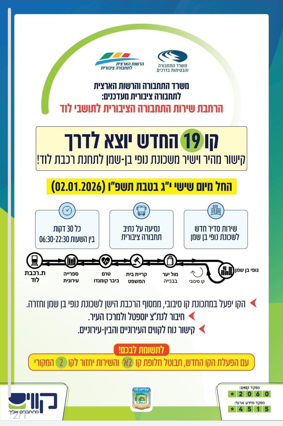 תושבי שכונת נופי שמן במזרח העיר התבשרו השבוע כי קו אוטובוס חדש, 19 במספרו, נוסף לתחבורה הציבורית בשכונה – קו שיחבר בין מרכז העיר ותחנת הרכבת אל הדיירים בשכונה החדשה