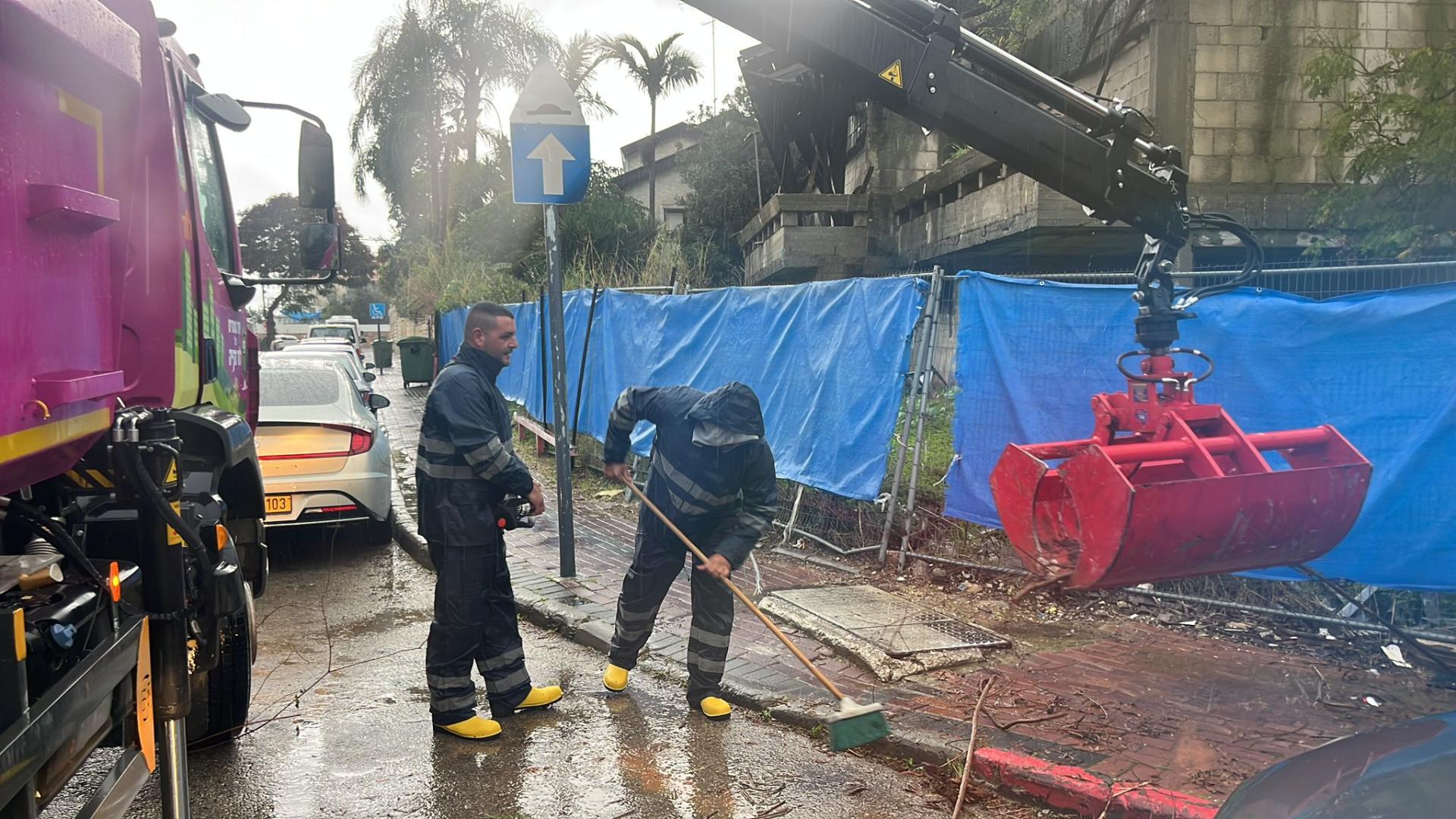 בזמן שישראל הוצפה: בלוד ניקו את קולטני הניקוז תחת הגשם, הקור והרוח - והגשמים לא גרמו להצפות
