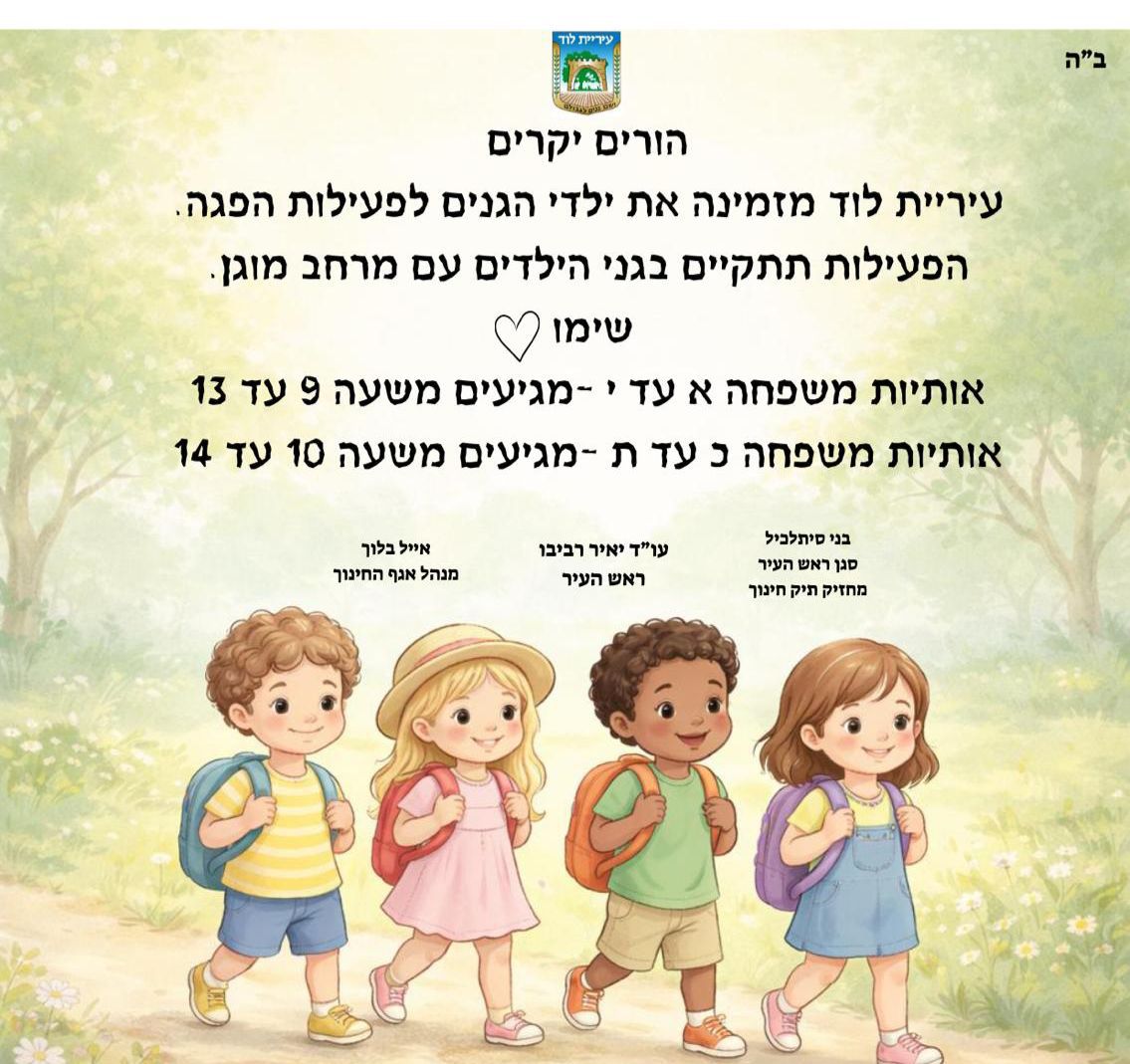 עיריית לוד באמצעות מחלקת גני ילדים באגף החינוך פיתחה מתווה הפוגה לילדיכם, שהוא כמובן רשות למי שיחפוץ בכך: