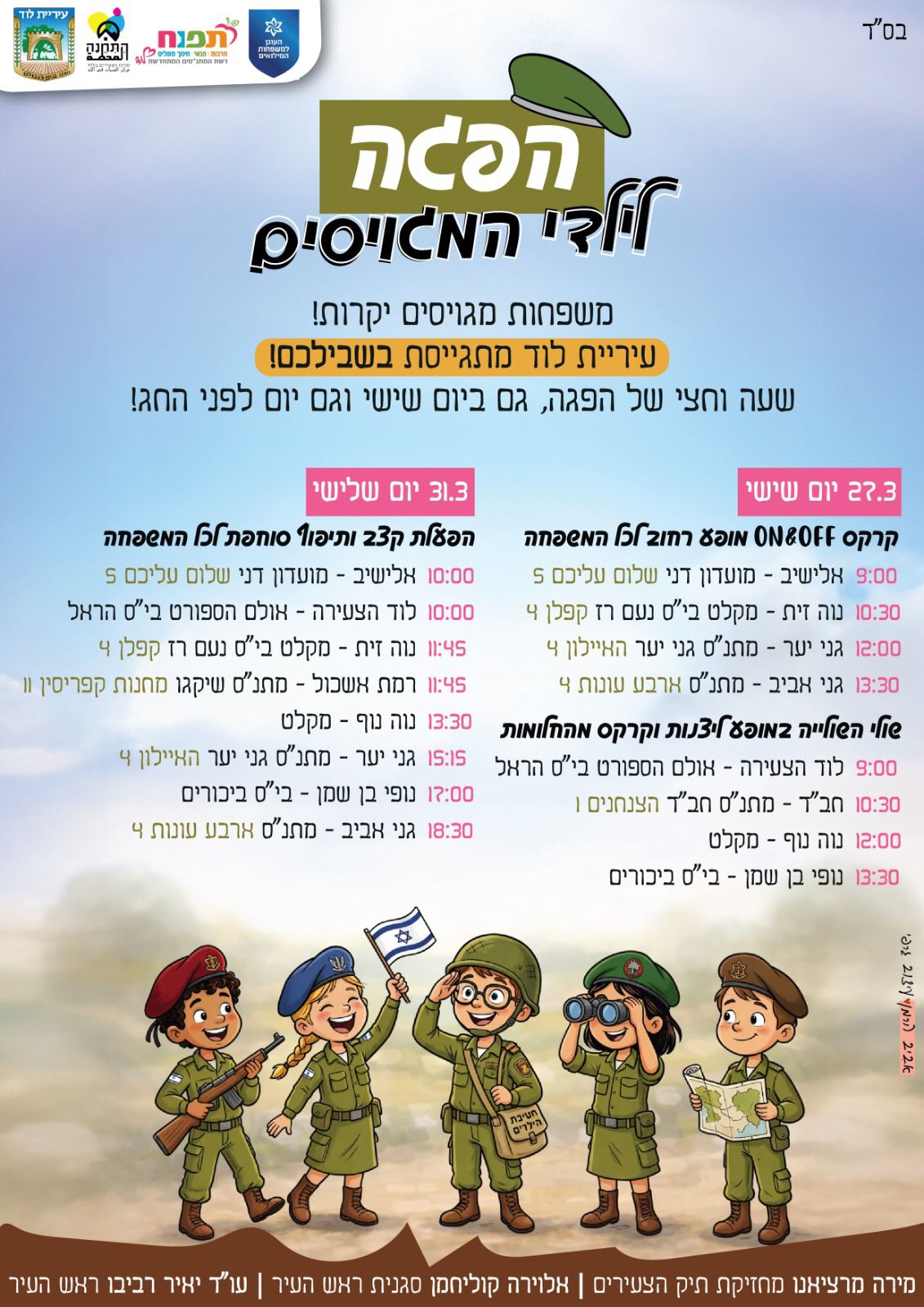 אגף תרבות בעיריית לוד מתגייס עבור משפחות המגויסים ומזמין אתכם לפעילות הפגה בימים הכי קריטיים לפני החג