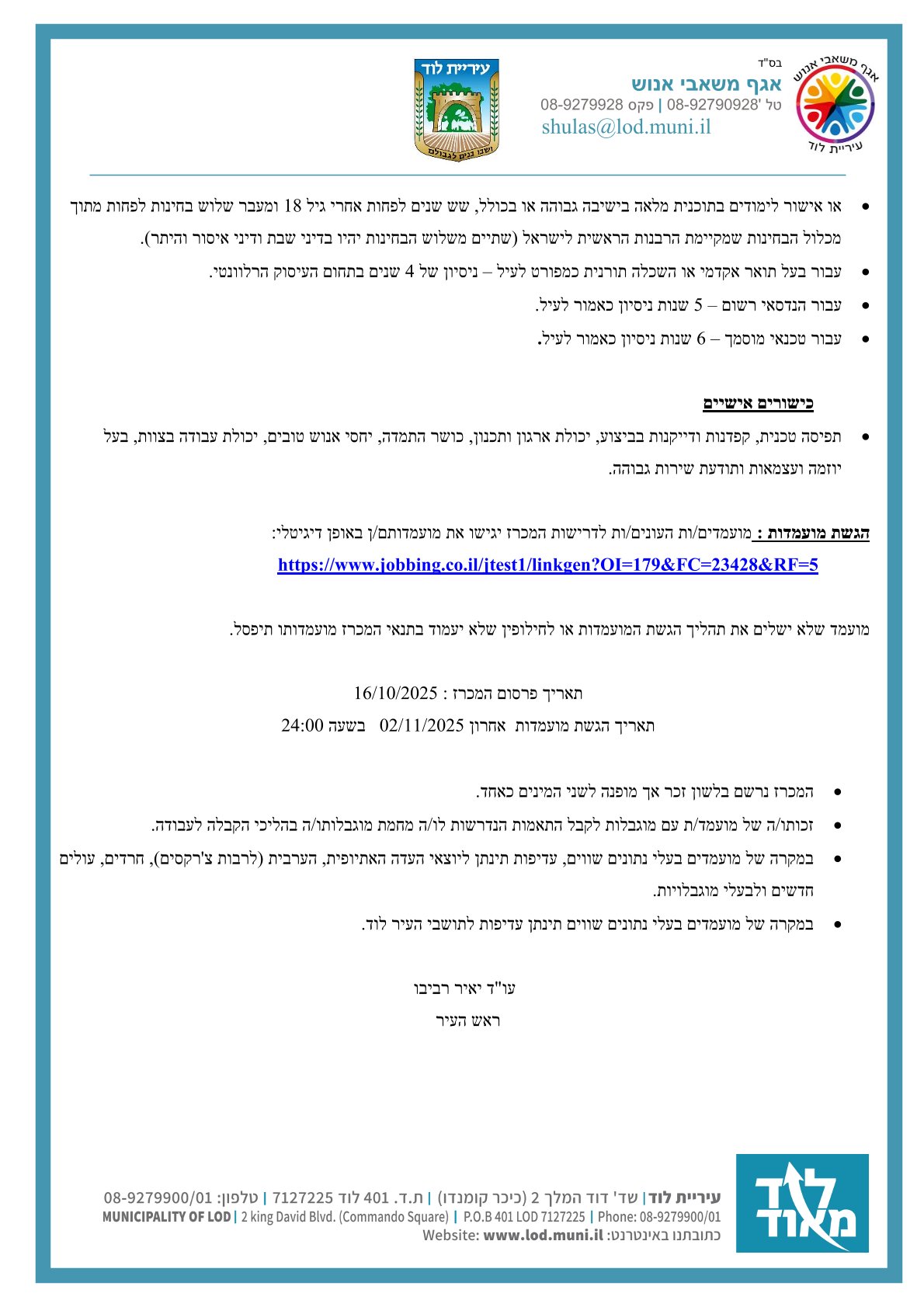 הודעה בדבר מקומות ציבוריים בעיריית לוד שהושלמה בהם חובת ביצוע התאמות הנגישות במהלך השנה שהסתיימה ביום ב' ניסן התשפ"ה (31 במרס 2025)