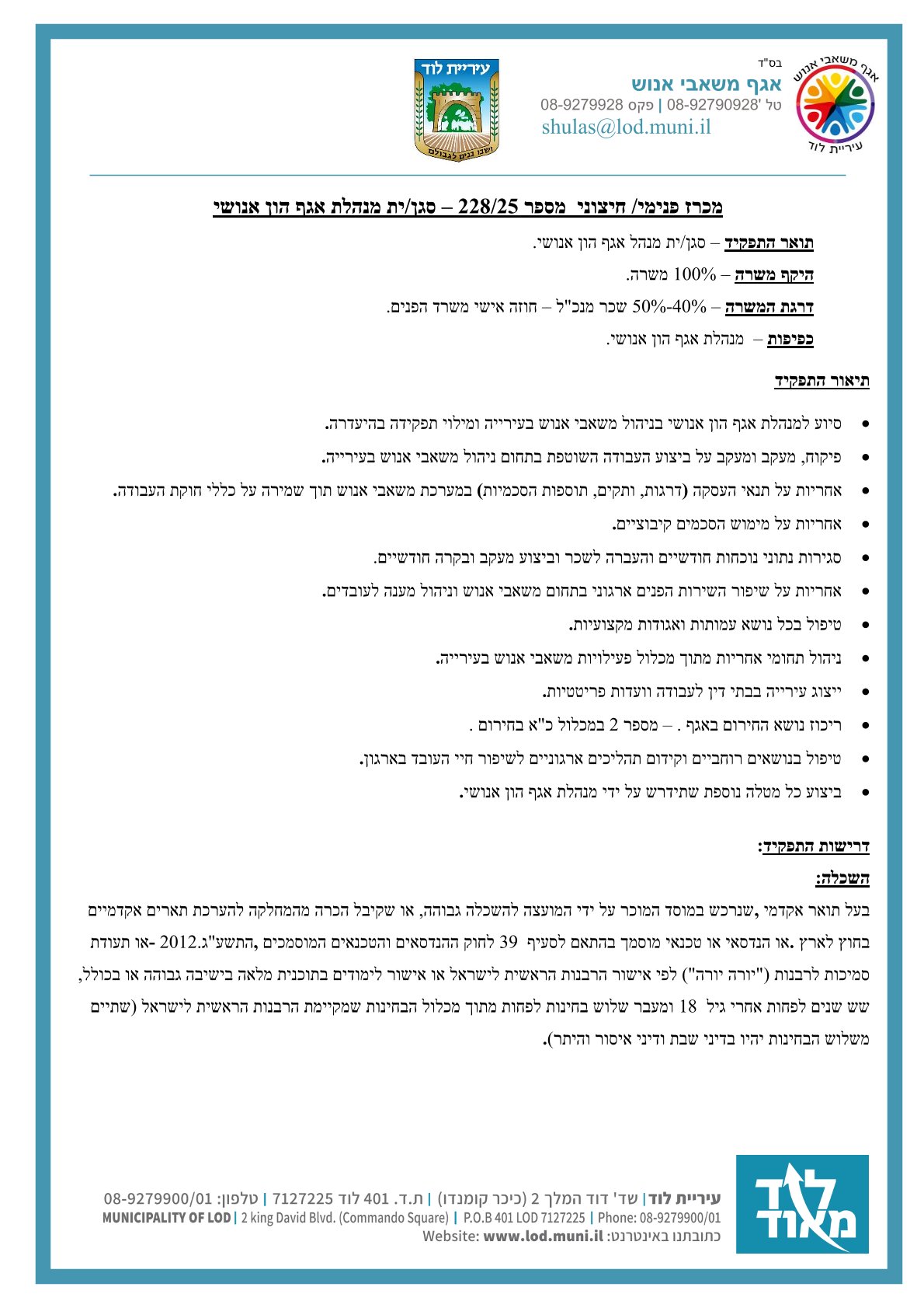 סגן/ית מנהלת אגף הון אנושי 228/25