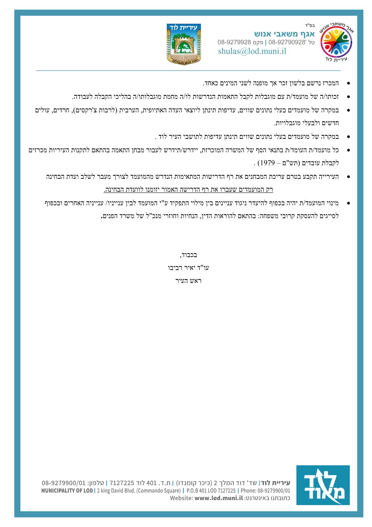 הודעה בדבר מקומות ציבוריים בעיריית לוד שהושלמה בהם חובת ביצוע התאמות הנגישות במהלך השנה שהסתיימה ביום ב' ניסן התשפ"ה (31 במרס 2025)